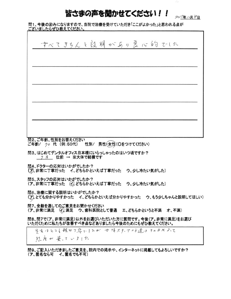 先生はとても親切丁寧でしたが、女性スタッフの方達はその日によって態度が異なっていました